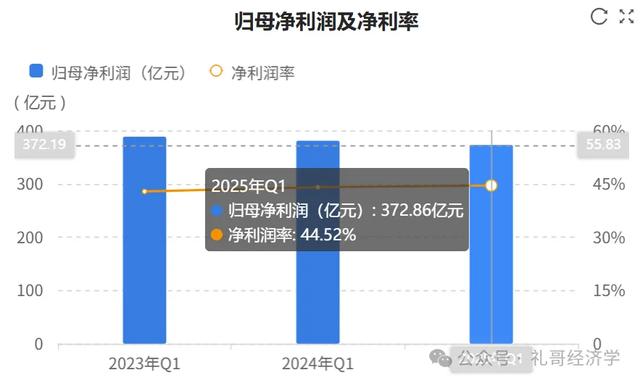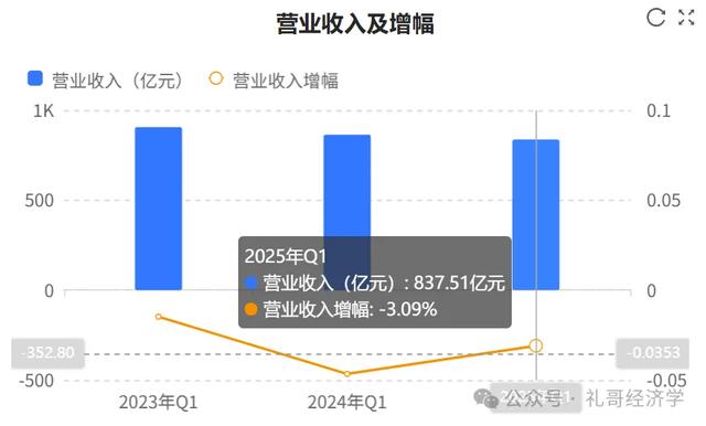 2025年Q1,招行实现营收837.5亿元,同比下降3.1%;归母净利润372.9亿元,同比下降2.1%。尽管数据仍处负区间,但降幅较2024年已明显收窄(2024年营收、净利润增速分别为-5.7%、-4.4%)。